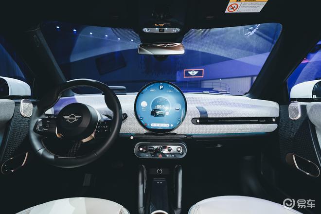 全新电动MINI COOPER沿袭了“极简至上”的内饰设计风格;前排座舱设计致敬经典MINI的简约造型,仅保留三个基本元素:方向盘、中央显示屏、拨杆开关,诠释着MINI至简的特质。