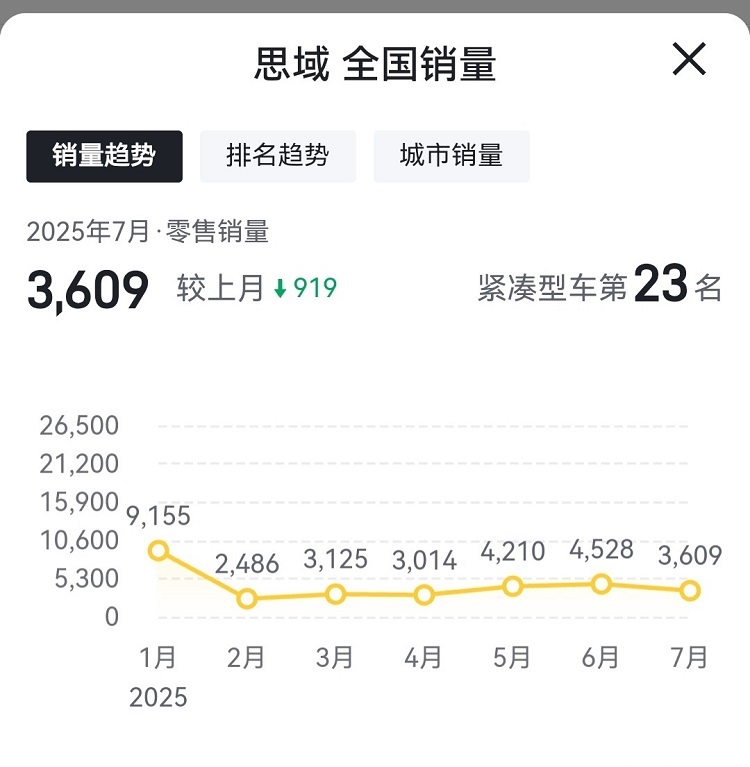 今年1月思域的销量还维持在9000多辆的水平,到了2月份直接崩盘,只有不到2500台,之后几个月就一直维持在3-4千台的范围。