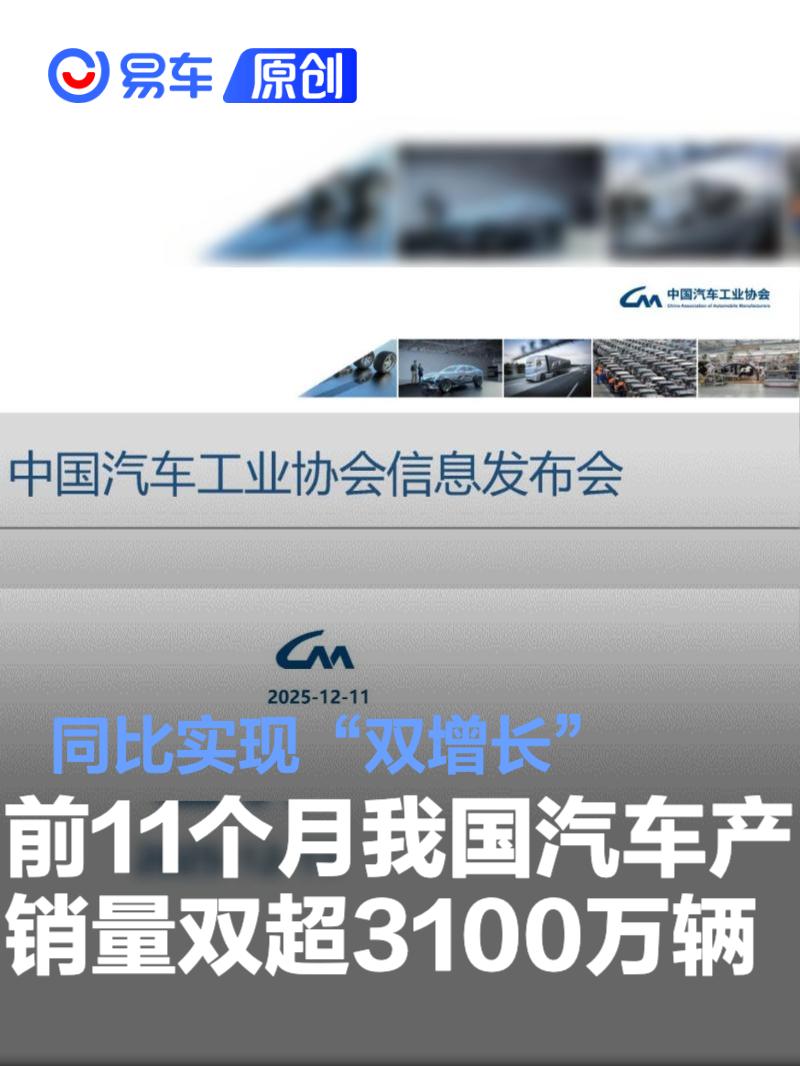 11月,汽车产销分别完成353.2万辆和342.9万辆,环比分别增长5.1%和3.2%,同比分别增长2.8%和3.4%。月度产量首次超过350万辆,创历史新高。1-11月,汽车产销分别完成3123.1万辆和3112.7万辆,同比分别增长11.9%和11.4%,产销量增速较1-10月分别收窄1.3和1个百分点。