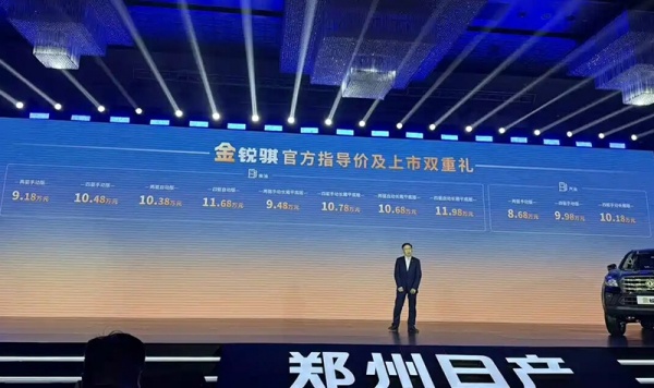 1月13日,郑州日产金锐骐上市,共推出11款车型,售价区间为8.68-11.98万。