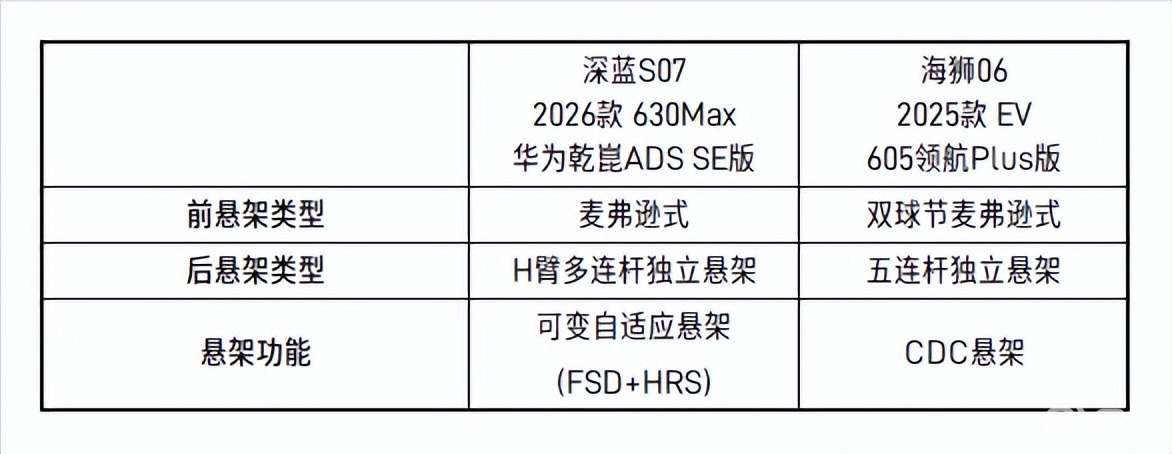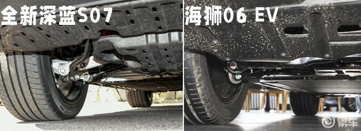 买车怎么能不了解底盘用料?经过对比可发现,两者的底盘用料可以称得上优秀水平。两者都是采用了前麦弗逊+后多连杆独立悬架组合。但奈何全新深蓝S07更“不讲武德”,全系标配FSD和HRS,可以实现悬架的软硬调节,兼顾舒适性与运动性。底盘部件还采用了大量的铝合金材料,有效减轻了簧下质量,提升车辆的操控响应性和燃油经济性。