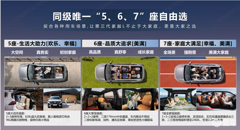 第三代豪越L首次同步推出5座、6座、7座三款车型。