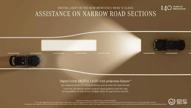 新款奔驰S级配备了品牌最新一代的Digital Light系统,每个大灯包含25,000个微型LED灯,两个大灯共有50,000个LED。